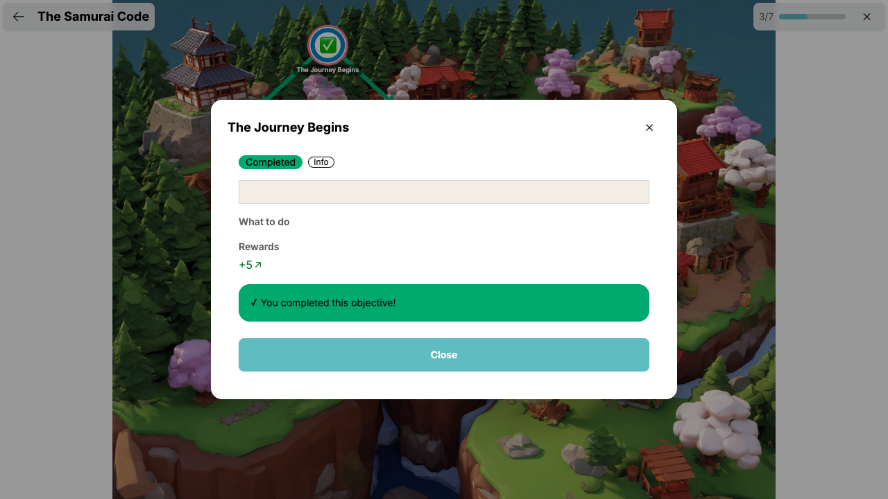 - Består — Målet er fullført og du tjener belønningene dine!