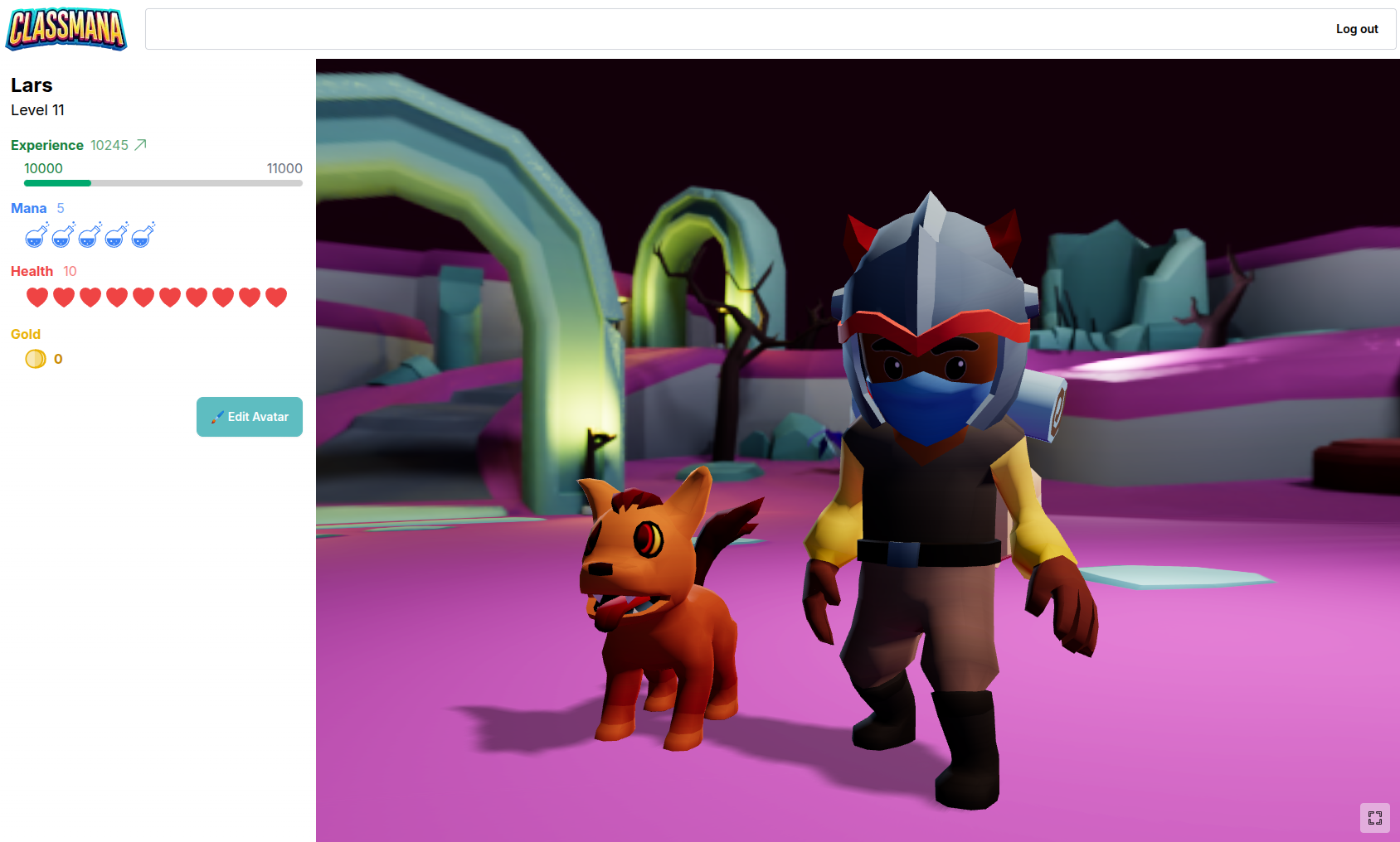Når elever logger inn, kan de bruke krefter og kjøpe butikkgjenstander direkte fra avatardashbordet sitt. Du bestemmer om de kan bruke gjenstander øyeblikkelig eller må be om din godkjenning først.