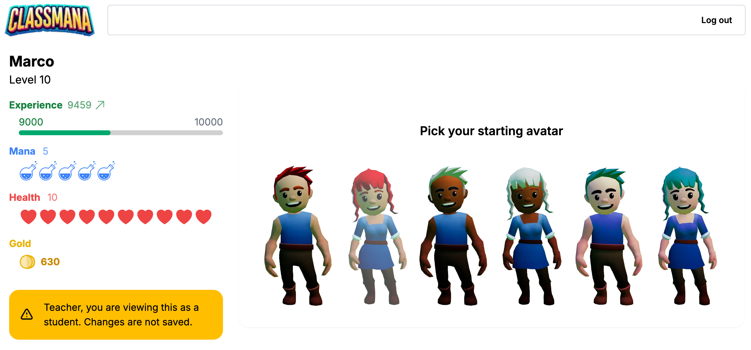 I det andre steget får elevene dine en innlogging. Deretter kan de logge inn på kontoen sin og tilpasse avataren sin. Avatarene deres vil vises på klassedashbordet. For hvert nivå opp kan elevene utstyre seg med kulere utstyr. Totalt for 35 nivåer, så du kan holde dem engasjert i et helt skoleår når de ville levle opp hver uke.